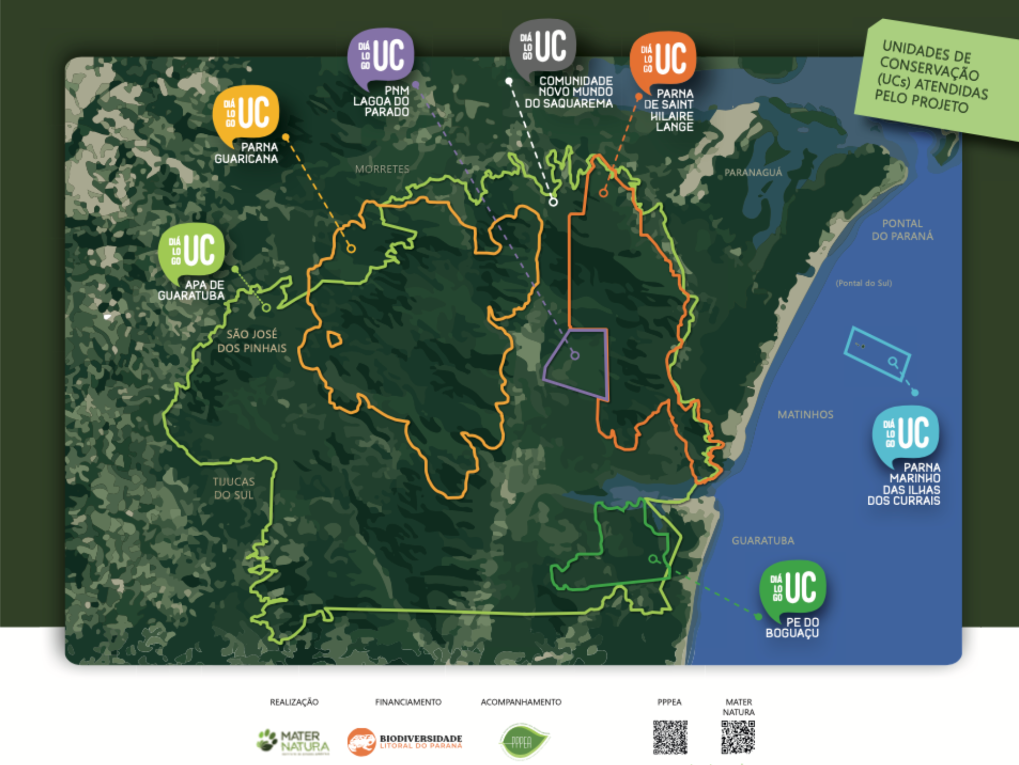 O projeto Diálogo UC: Fortalecimento da Gestão Participativa das Unidades de Conservação do Território da APA de Guaratuba, conduzido pelo Mater Natura – Instituto de Estudos Ambientais com recursos do Programa Biodiversidade Litoral do Paraná (TAJ), tem como objetivo fortalecer a gestão participativa nas Unidades de Conservação (UCs) do território da Área de Proteção Ambiental (APA) de Guaratuba, no Paraná. Abrange seis UCs – APA de Guaratuba, Parque Estadual do Boguaçu, Parque Nacional Guaricana, Parque Nacional Saint-Hilaire/Lange, Parque Natural Municipal Lagoa do Parado, Parque Nacional Marinho das Ilhas dos Currais – além de uma comunidade local. Com duração de 18 meses, a proposta do projeto é integrar diversos atores locais, como gestores, conselheiros, comunidades tradicionais e usuários dos recursos naturais, promovendo a articulação para a conservação da Mata Atlântica.