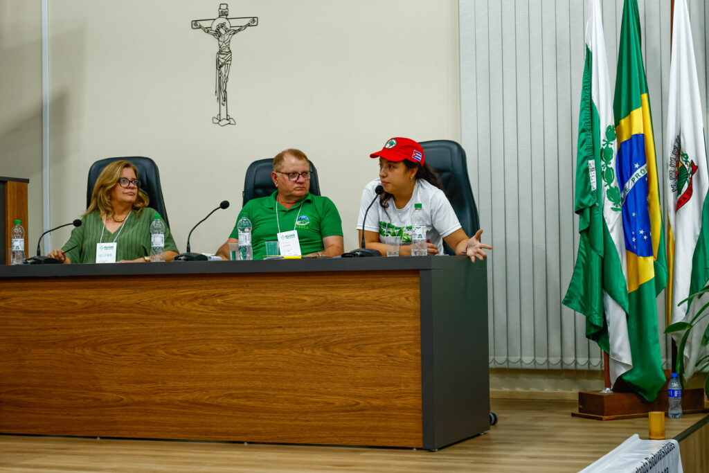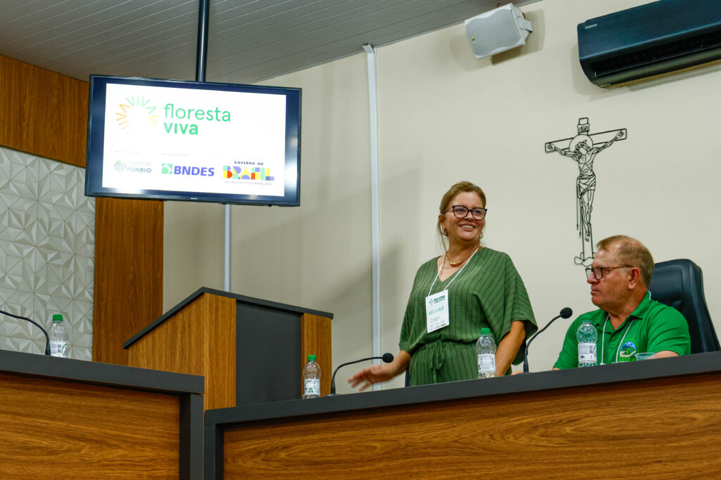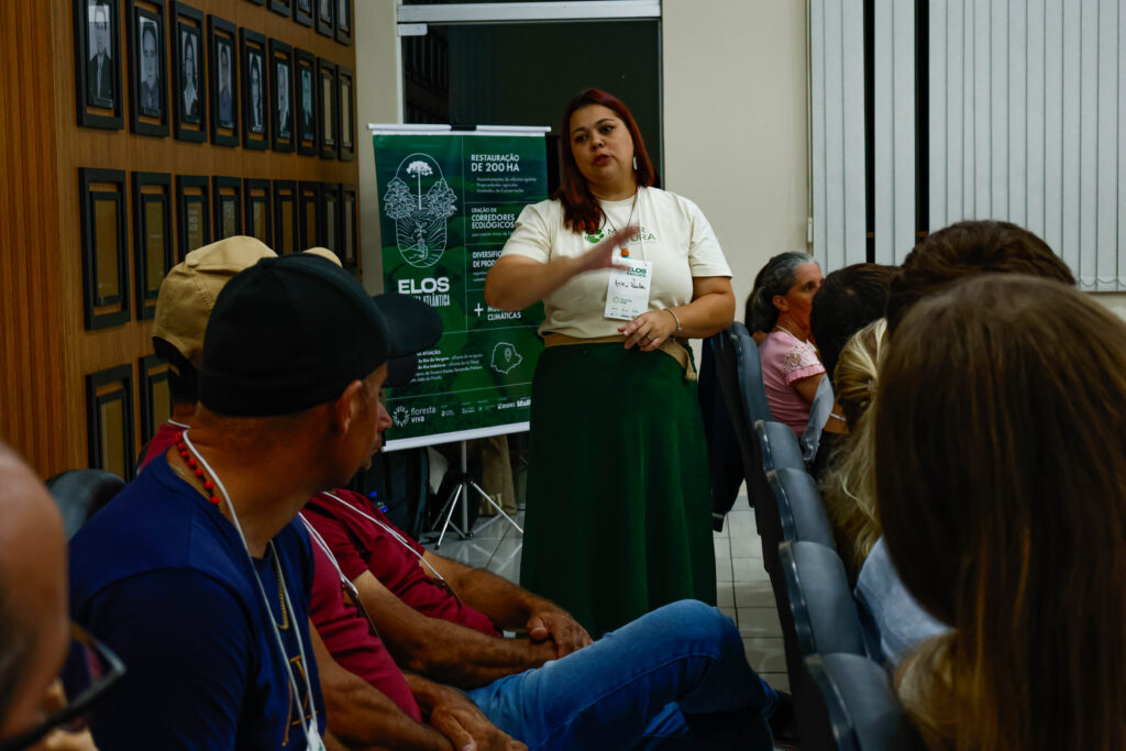Ana Paula Silva, coordenadora do projeto “Elos da Mata Atlântica”, do Mater Natura, apresenta a iniciativa no evento em Teixeira Soares/PR. Foto: Amanda Samways