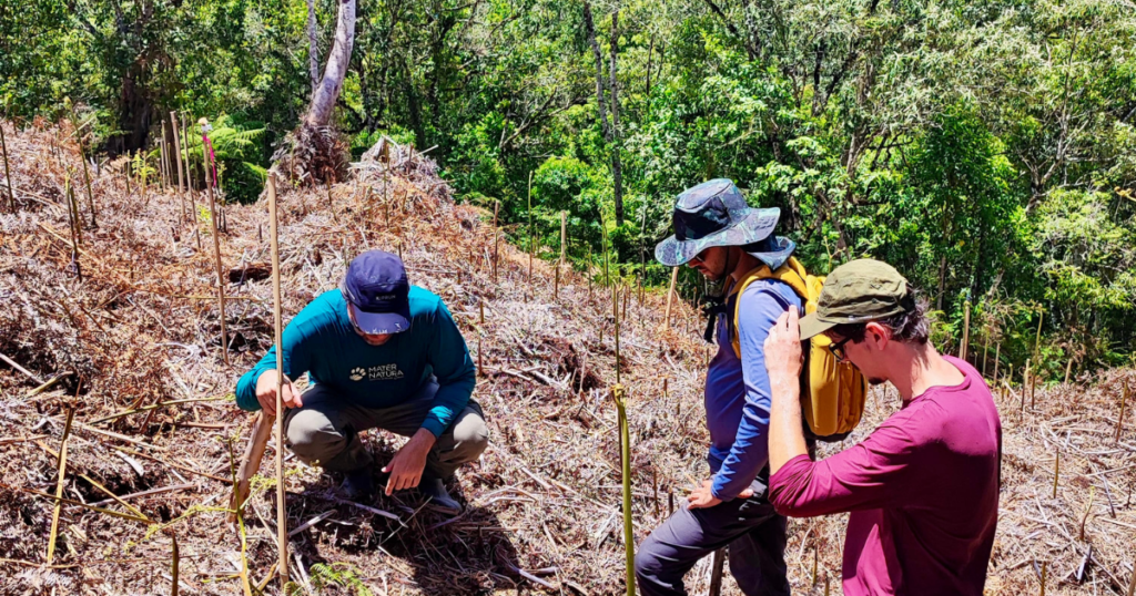 Segundo o coordenador do projeto, Cesar Tavares, visitas de campo como esta são fundamentais. “Nós avaliamos o progresso das mudas, ajustamos técnicas de restauração quando necessário e garantimos que os processos naturais de regeneração da floresta se consolidem, fortalecendo a biodiversidade local”, detalha.