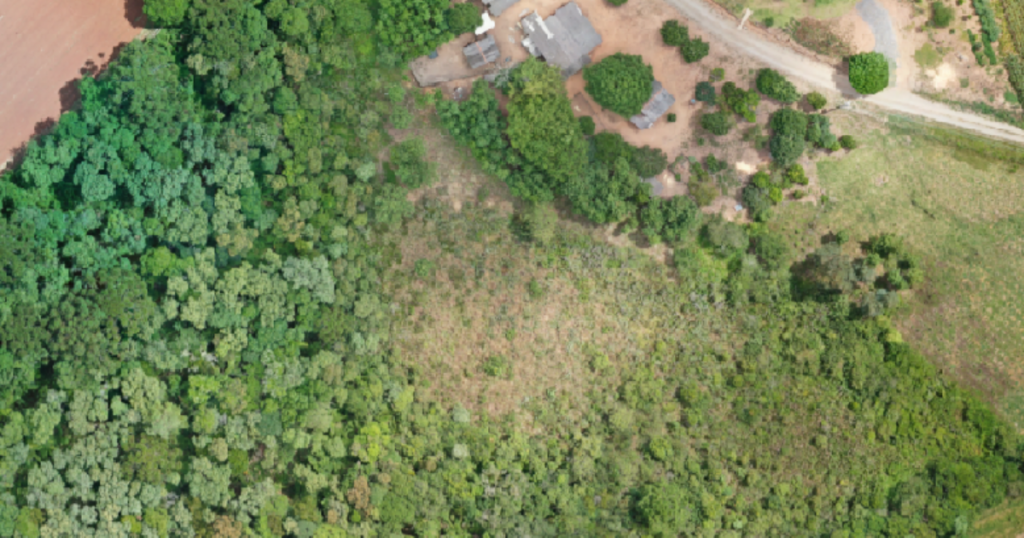 Imagens aéreas produzidas por drone ajudam a mapear os polígonos prioritários e a apoiar o planejamento das estratégias de restauração. Foto: Mater Natura.