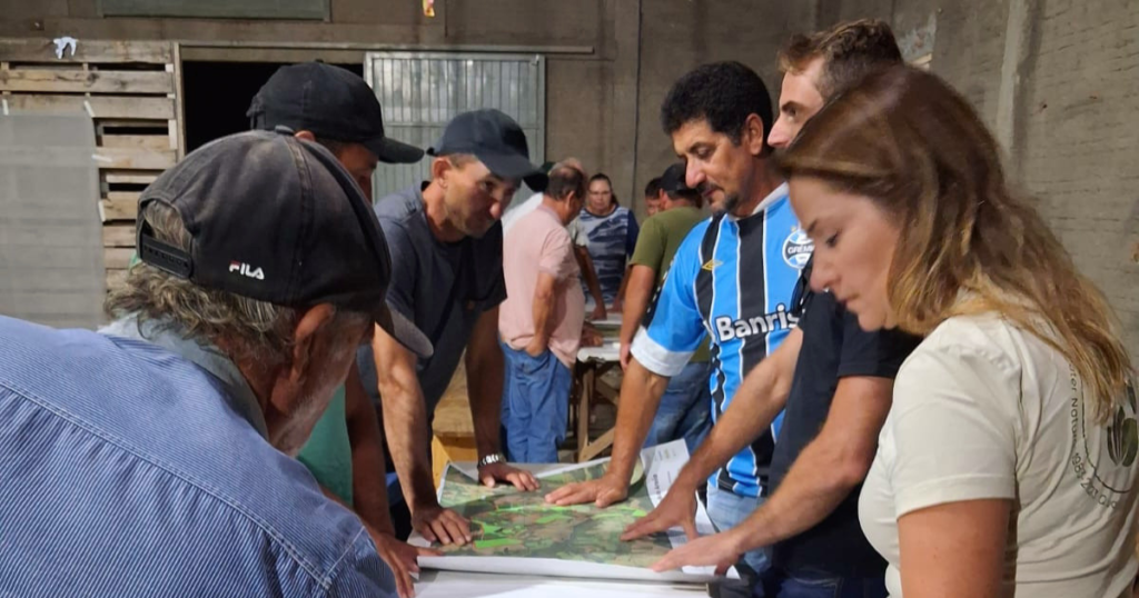 As oficinas também incluíram atividades de mapeamento participativo, que ajudaram a identificar áreas com potencial para restauração, necessidade de cercamento, trechos sensíveis para proteção e possibilidades de atuação dentro dos lotes e das áreas de reserva legal.