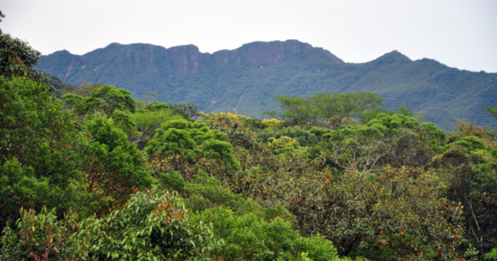 Morro Garuva, na divisa entre Paraná e Santa Catarina, onde a nova espécie ocorre em área restrita do topo da montanha. FOTO: Luiz Fernando Ribeiro/Mater Natura.